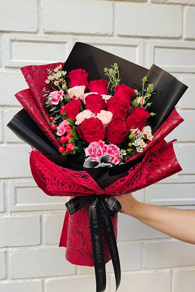 ช่อกุหลาบแดงวาเลนไทน์ 9 ดอก